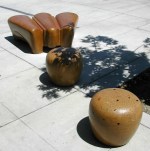 This Public Art project was commissioned by the City of Stockton, California in 2003 as a collaboration between Flying Turtle Concrete as installers and fabricators and Lisa Cooperman and myself as designers and sculptors. There are 6 different configurations of the benches all located along the Miracle Mile district in Stockton. colored, cast concrete with embedded sea glass.